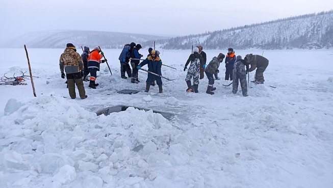 Местным населением были организованы поиски потерявшихся. На 371 км реки Яна были обнаружены следы провала снегохода под лед, следов людей около места провала не обнаружено. Сделав лунку, на дне, на глубине 1,5 метров, обнаружен снегоход "Буран" и нарты. Тела мужчин не обнаружены.