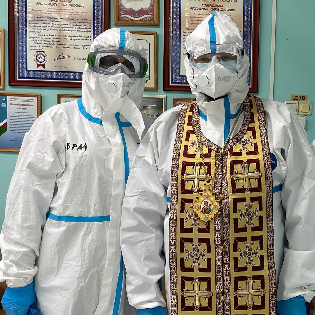 Архиепископ Роман посетил больных ковидом. Молебное пение о здравии лечащих и лечащихся совершено в красной зоне, в Гериатрическом центре Республиканской клинической больницы №3, сообщает тгк Православная Якутия.