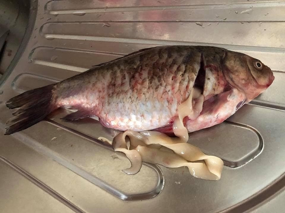 - Но ведь можно увидеть эти белые кругляшки в рыбе, понять, что она фенозная и выбросить ее, даже не отдавая домашним животным!