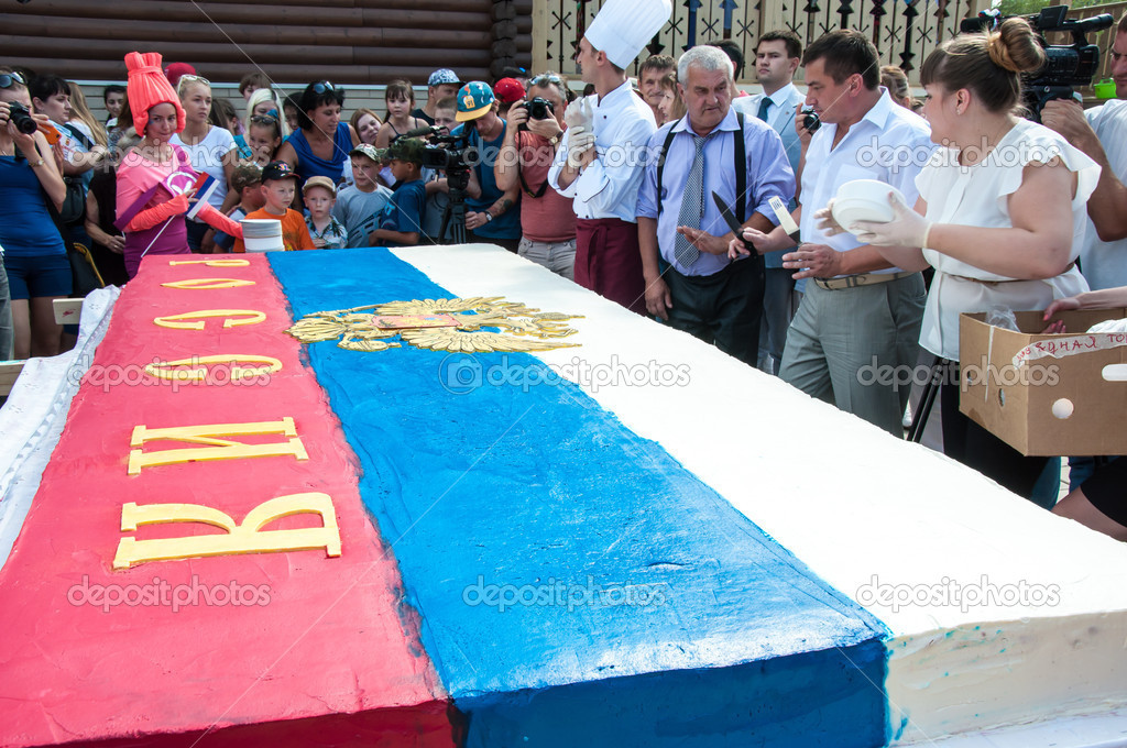 В День флага России кондитеры Якутского хлебокомбината испекут торт весом 280 кг, сообщает ИА YakutiaMedia. Он будет состоять из 1,4 тысячи пирожных весом по 200 грамм. В понедельник, 22 августа, на Комсомольской площади можно будет попробовать огромную сладость. "Кондитеры ЯХК начнут готовить торт с воскресенья на понедельник. На каждом пирожном будут изображены достопримечательности Якутии, а также природа, цветы, якутские лошади — это будут такие съедобные фотографии, с кокосовой стружкой по краям. Пирожные будут оформлены в виде российского триколора", — рассказали в пресс-службе хлебокомбината. Праздничный торт можно будет попробовать в понедельник, 22 августа, на Комсомольской площади ближе к 13.00 часам. Добавим, что самый большой торт в истории был приготовлен кондитерами якутского хлебокомбината в День 370-летия основания столицы Якутии в 2002 году, его вес составил 850 кг. В 2012 году на День города испекли торт весом 360 кг.