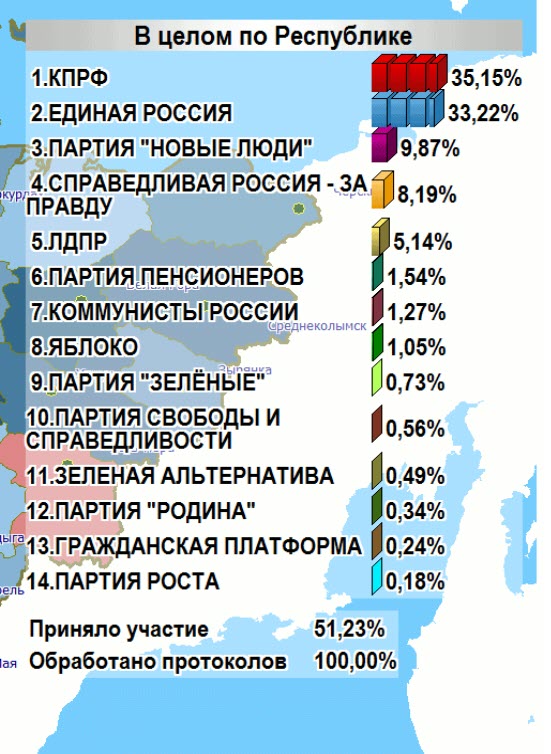 Как сообщается на сайте ЦИК, в Якутии подсчитано 100% протоколов.