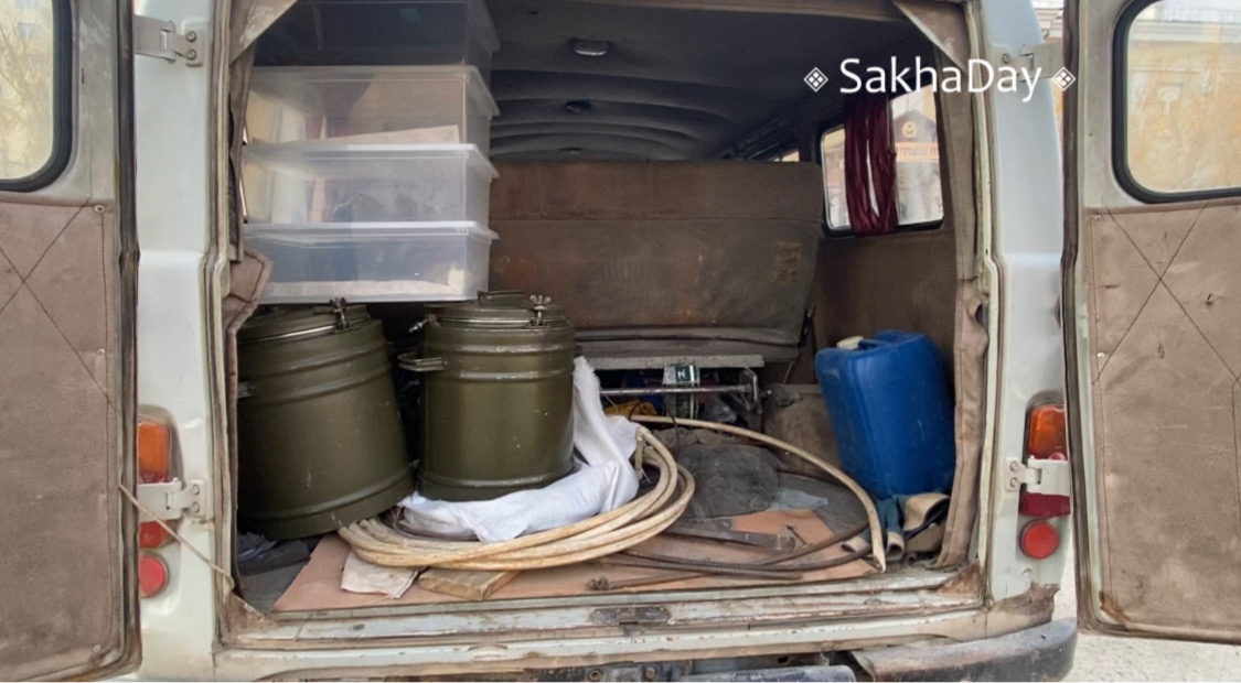 В Якутске посуда из-под еды для школьников поставляется в антисанитарном автомобиле сантехников