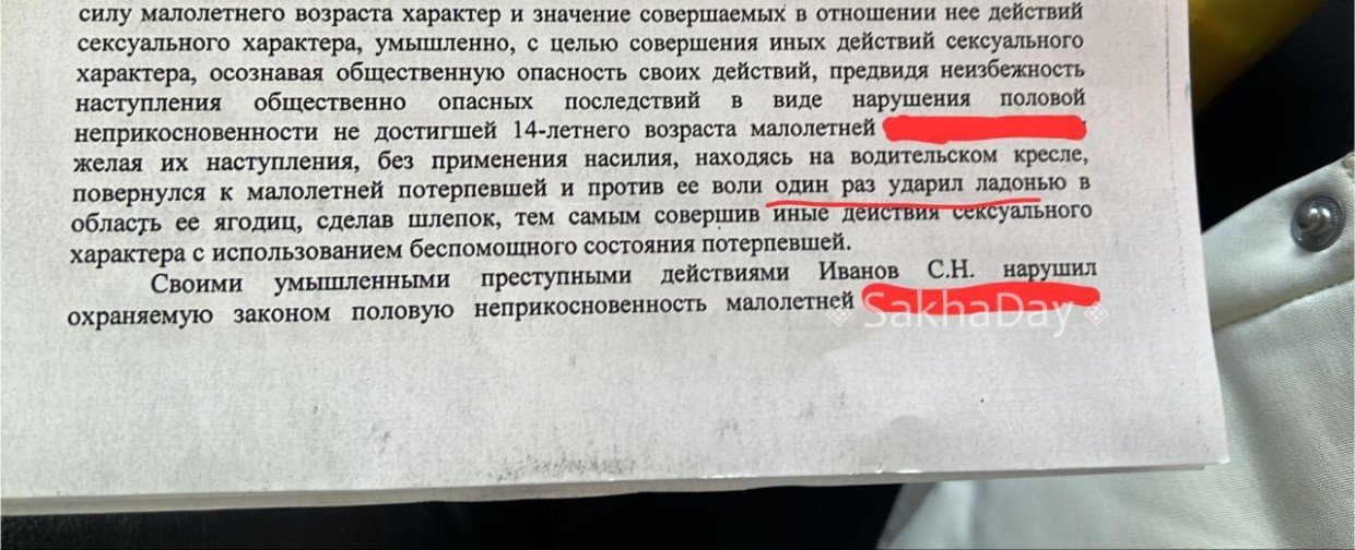 В Якутске на 12 лет и 10 месяцев осужден 63-летний водитель маршрутного автобуса №2 Станислав Иванов, которого суд признал виновным по статье «насильственные действия сексуального характера, совершенного в отношении несовершеннолетнего». По версии следствия, мужчина шлепнул рукой по ягодицам девочки, расплатившейся за проезд.