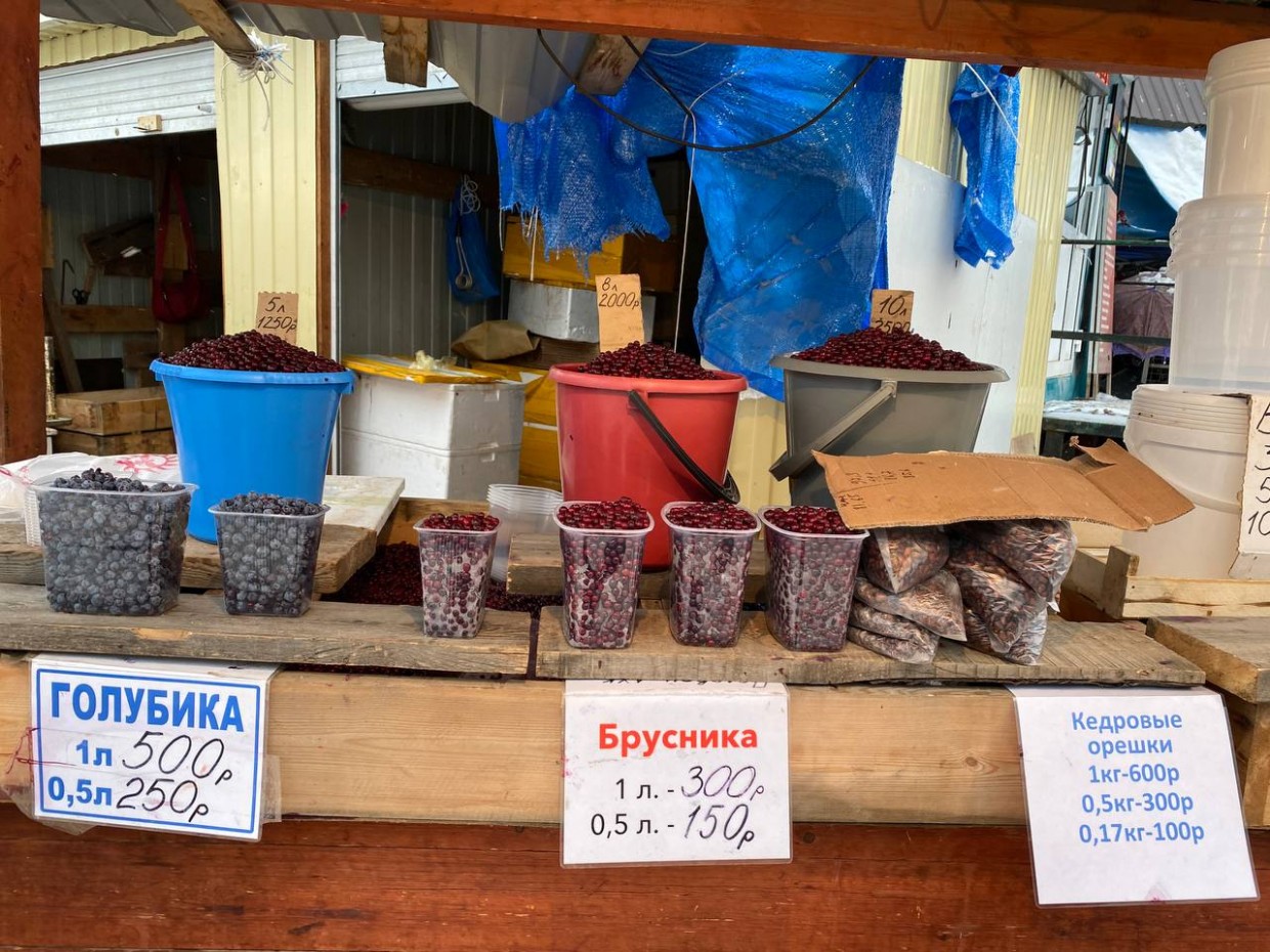 При входе на рынок идёт дегустация свежих яблок из Краснодарского края и Азербайджана за 150 рублей за килограмм. Пожалуй, на этом заканчивается список сезонных фруктов Крестьянского рынка. Цены на ягоды не изменились с лета.