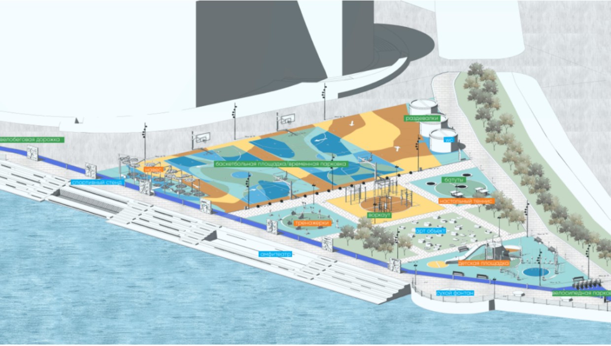 — К началу проведения VIII летних Международных спортивных игр «Дети Азии» планируется завершить участок №2 (в части благоустройства территории СК «Триумф»), участок №3 (в части участка между полуостровом Филармонии и примыканием к территории СК «Триумф»). На территории помимо прогулочной зоны появятся спортивные и игровые зоны, а также места для отдыха жителей всех возрастов. Работы ведутся в рамках реализации мастер-плана Якутска, — сообщала мэрия Якутска в мае 2024 года.