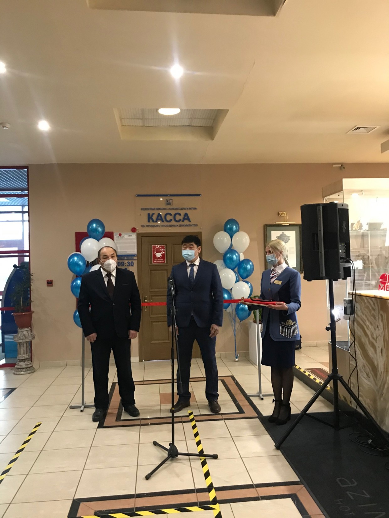 Сегодня, 25 ноября, в столице нашей республики открылась билетная касса Акционерной компании «Железные дороги Якутии». Новая точка железнодорожных билетов расположена в центре Якутска на первом этаже отеля «Азимут», что обеспечит удобство обслуживания для жителей и гостей республики. В железнодорожной кассе можно будет оформить проездные документы на поезда по всем направлениям, получить информацию о расписании движения поездов, стоимости проезда, узнать о льготах и акциях для пассажиров.