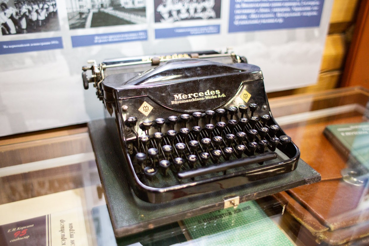 Среди экспонатов были дореволюционные тетради, немецкая печатная машинка «Mercedes», семейные реликвии и даже открытка, адресованная Максиму Горькому.