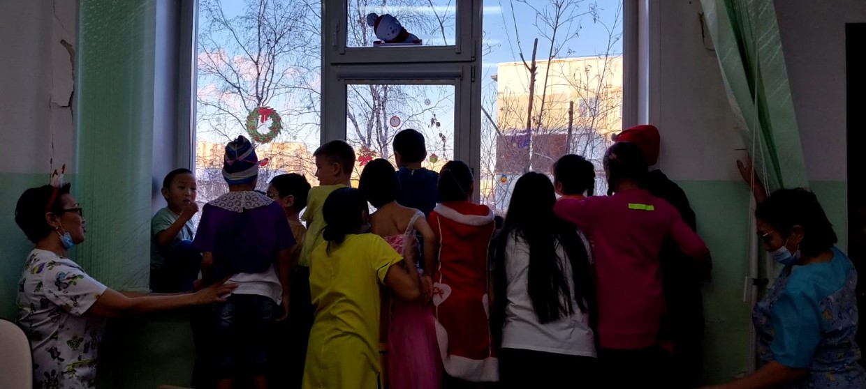 Аляскинских маламутов и хаски дети видели из окон. А уже внутри больниц новогодние гости провели хоровод, вручили подарки за песенки и стишки.