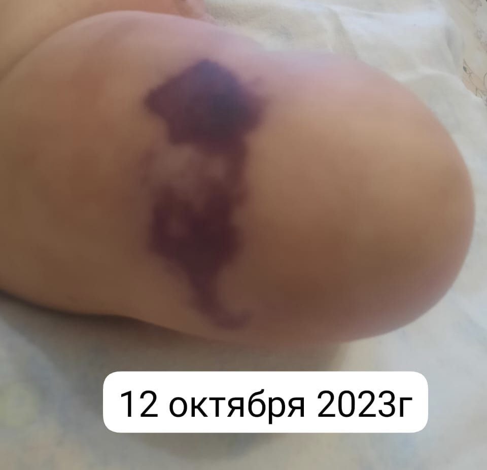 Через два дня 11 октября у мальчика на бедре появился небольшой синяк. Анна вызвала врача на дом, та выписала лекарство и велела сделать йодную сетку на бедре.