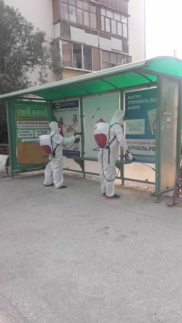 В городе Якутске, в эти выходные 1-2 августа, продолжилась дезинфекция общественных пространств в рамках мероприятий против распространения новой коронавирусной инфекции. Работники МУП «Жилкомсервис» провели масштабную обработку городских площадей, детских площадок, тротуаров, автобусных остановок при помощи ранцевых опрыскивателей.