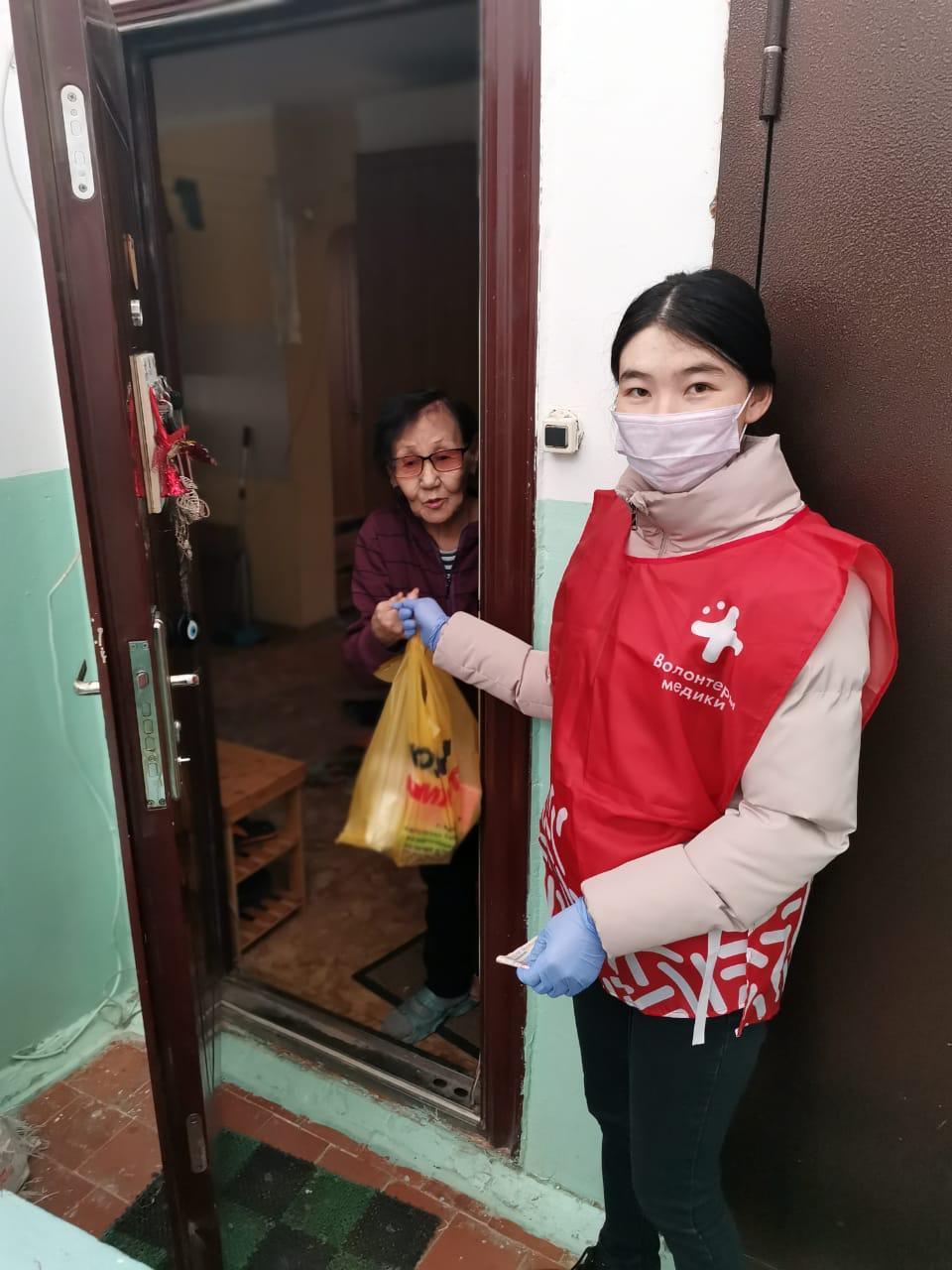 В рамках мероприятий по предупреждению распространения коронавирусной инфекции в Якутске волонтёры помогают пожилым людям, которые оказались в самоизоляции. В период пандемии людям старше шестидесяти пяти лет рекомендовано не покидать дома до нормализации эпидемиологической ситуации.