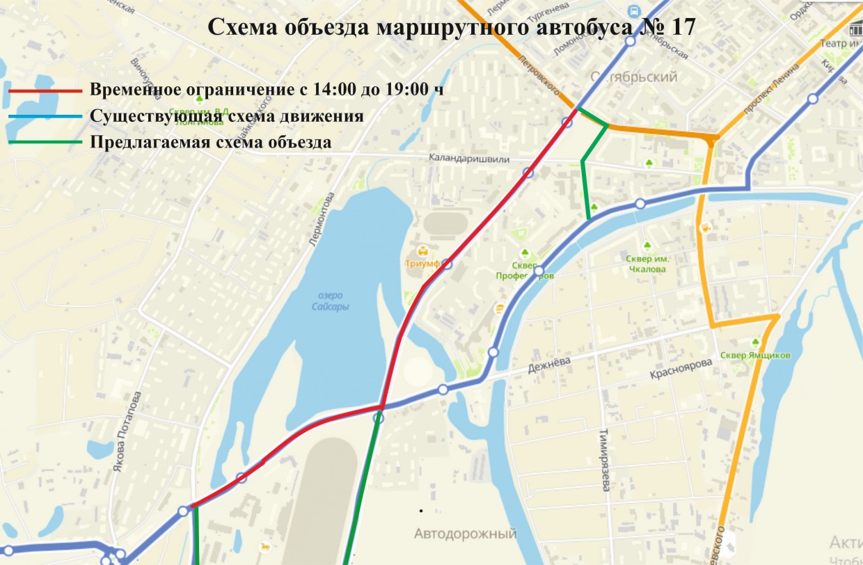 Маршрутные автобусы №5, 17, 18, 35, 101, 103, 108 будут осуществлять движение согласно разработанным схемам объезда.