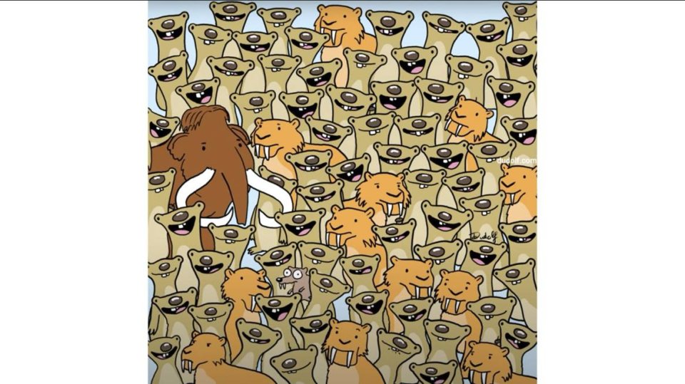 А сегодня задачка ой не из простых. Вам нужно найти все орехи из «Ледникового периода», спрятанные на изображении. Не отвлекайтесь на компанию из мамонта, ленивцев и саблезубого тигра — сконцентрируйтесь на цели. Вам нужны орехи! И их всего 5. Для решения этой головоломки потребуется максимум фокуса, а времени у вас — 15 секунд.