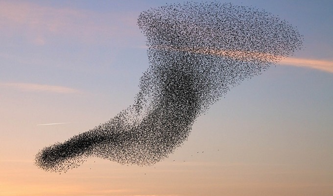 Это природное явление, когда тысячи птиц динамически формируются в удивительные небесные фигуры, называется мурмацией. "Танец скворцов" - это поистине уникальное явление. Ученые до сих пор не могут точно сказать, зачем скворцам нужны подобные упражнения. Специалисты предполагают, что таким образом птицы пытаются защититься от хищников, сохранить тепло или получить как можно больше информации о стае, своего рода коллективный разум.