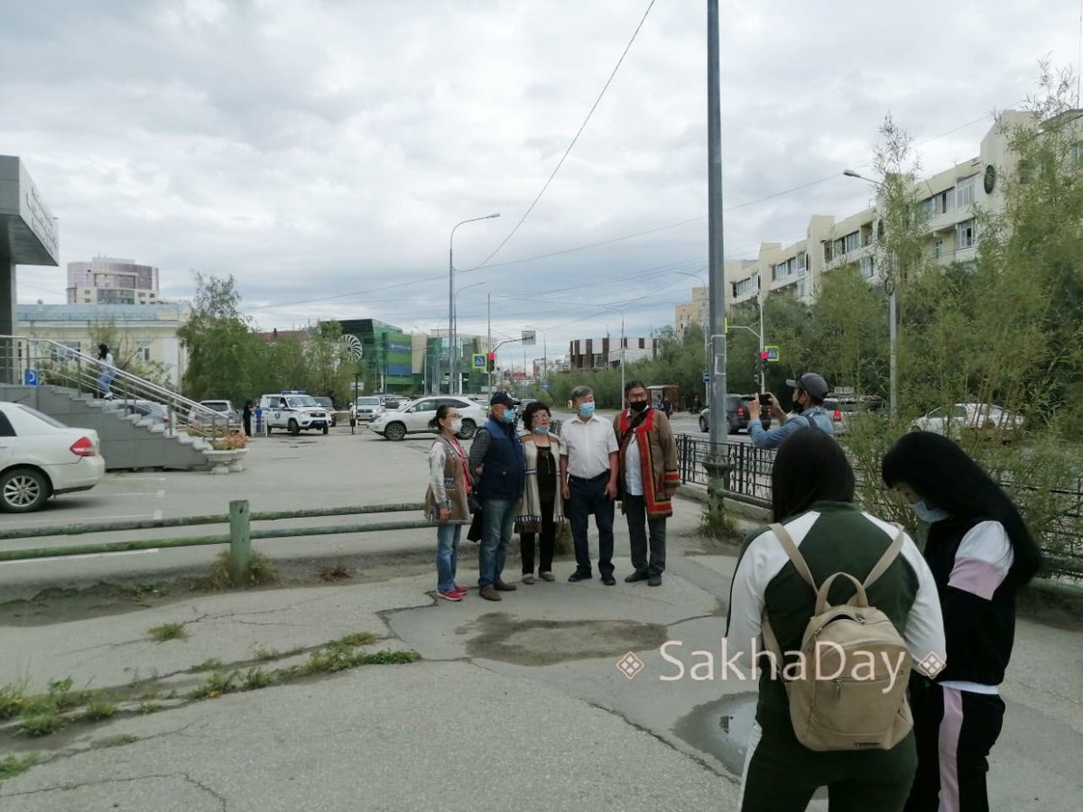 Сегодня, 12 августа, в здании Якутского горсуда проходит заседание по определению меры пресечения задержанному депутату Ил Тумэна Арсентию Николаеву. Чтобы поддержать лидера у здания суда собрались представители коренных малочисленных народов Севера Якутии. Некоторые были в национальных костюмах.