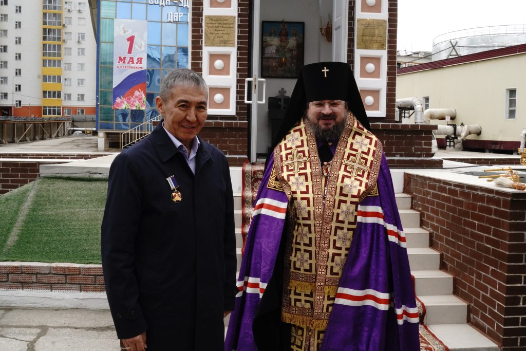 Владыка Роман также вручил медаль Якутской и Ленской епархии священномученика Евгения (Зернова) первой степени генеральному директору Водоканала Анатолию Кырджагасову.