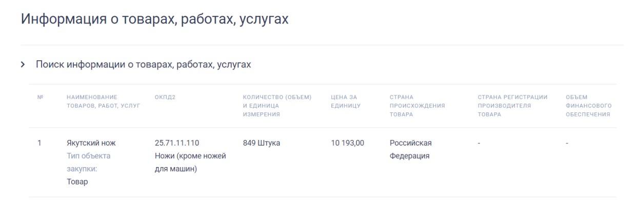 Госучреждение «Конгресс-центр Якутия» заключило контракт на поставку 849 штук якутских ножей. Стоимость ножа равна 10 193 рубля. Такие ножи глава Якутии Айсен Николаев вручает участникам СВО. В контракте об этом не указывается — госзакупка «Конгресс-центра Якутия» не детализируется никак.