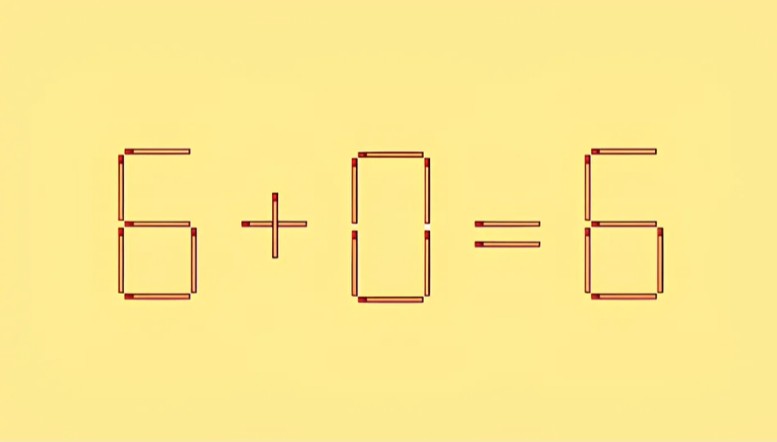 А вот и правильный ответ, проще пареной репы! Меняем цифру 8 на 6, а свободную спичку переносим в минус, чтобы из него вышел плюс. Вуаля — перед нами правильный ответ 6+0=6. Решите еще одну головоломку.