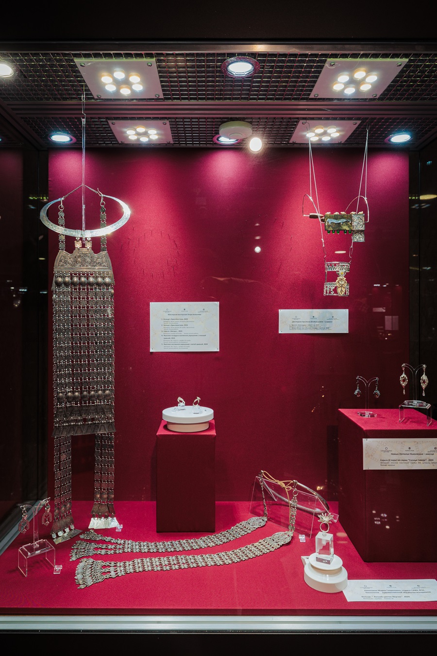 «Лучшие ювелирные украшения Якутии 2024» демонстрирует природные богатства этого уникального края, подчеркивая их красоту и изысканность их ювелирной обработки. В этом году на выставке представлены 73 украшения 21 участника - как известных, так и начинающих ювелиров, в том числе студентов Якутского художественного училища и Арктического института культуры и искусств.