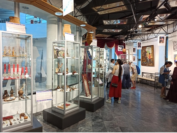 В выставочном зале представлены и эксклюзивные работы скульпторов и художников-ювелиров, где искусно обыгрывается тема хомуса.