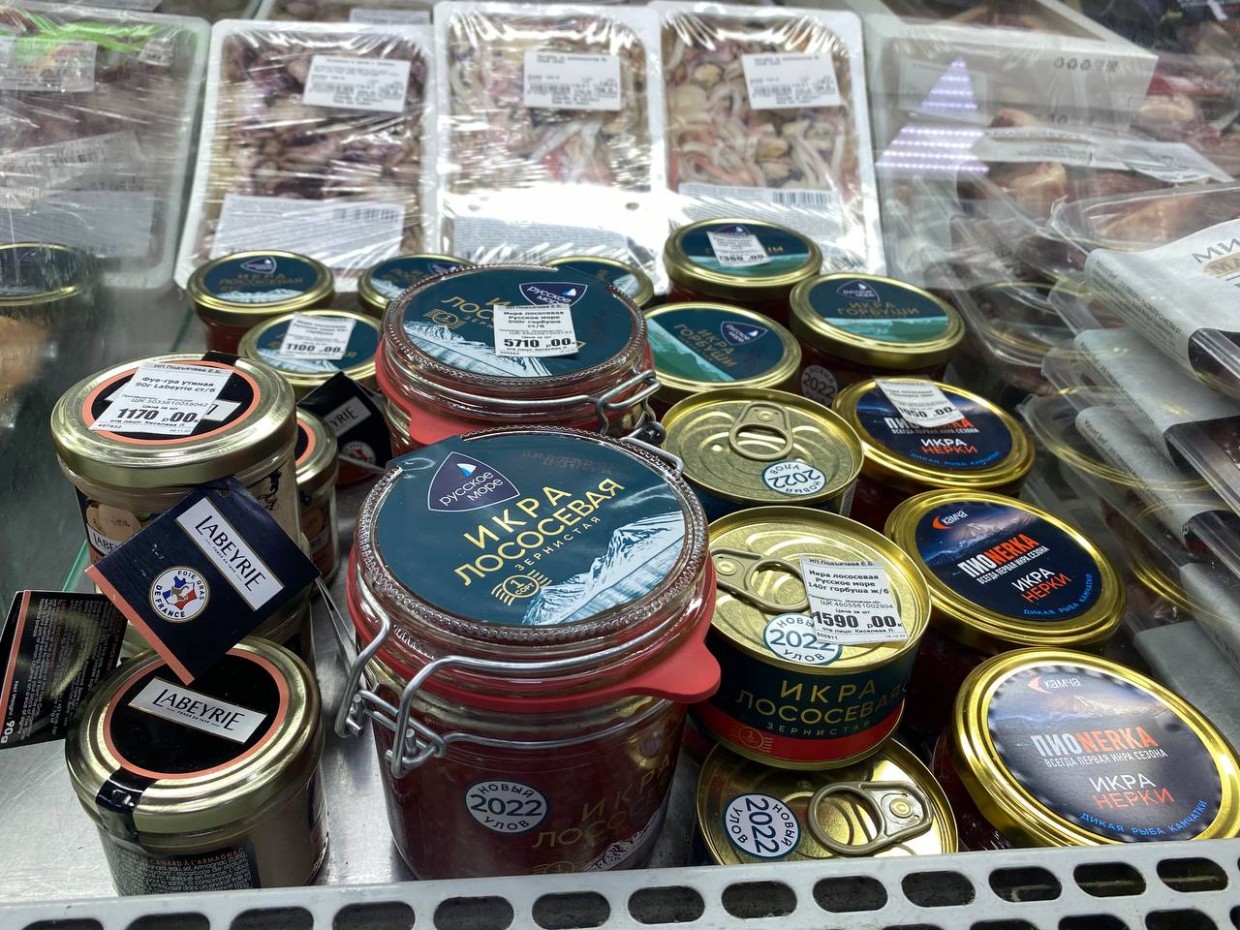 Икра лососевая зернистая «Русское море» 500 грамм – 5710 руб. Икра горбуши зернистая «Русское море» 210 грамм – 2360 руб.