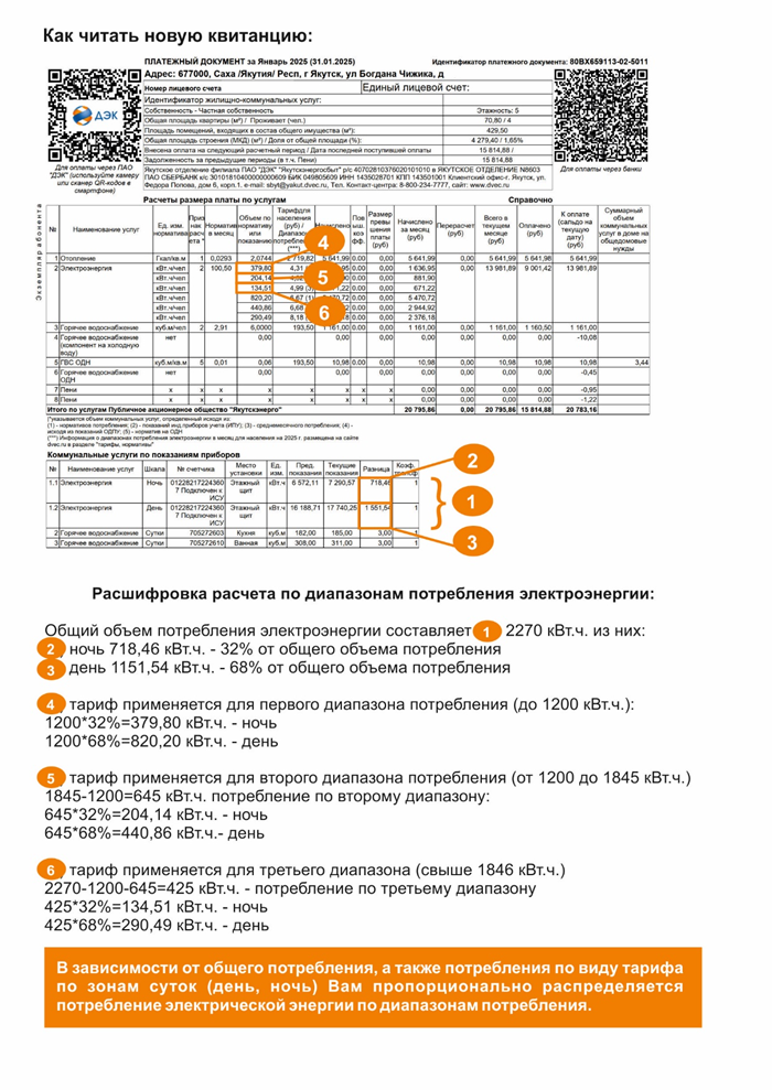 В феврале жители Республики Саха (Якутия) получили единый платежный документ ПАО «ДЭК», в котором расчет платы за потребленную электроэнергию в январе произведен в строгом соответствии с новыми диапазонами объемов потребления.