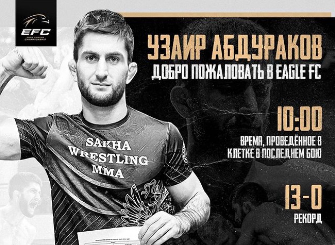 В начале нового года два ведущих бойца клуба «Sakha Wrestling MMA» Октябрин Яковлев и Узаир Абдураков подписали контракты с лигой EAGLE FC, ранее называвшейся GFC (Gorilla Fighting Championship). Организация была переименована в декабре 2020 года. Ее возглавляет чемпион UFC Хабиб Нурмагомедов. Об этом сообщает Sportyakutia.ru.