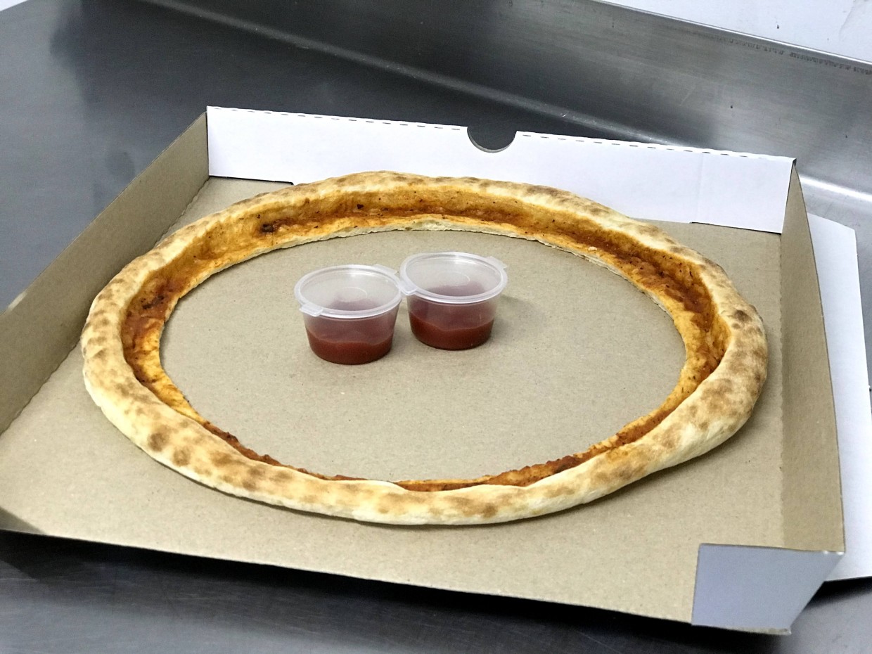 В пицце нет сыра и других наполнителей - только пустое кольцо из корочки. По желанию клиента в комплекте идет соус. Внешний вид пиццы напоминает цифру «0». Причиной акции стало обнуление средств предпринимателей, занятых в сфере общественного питания.