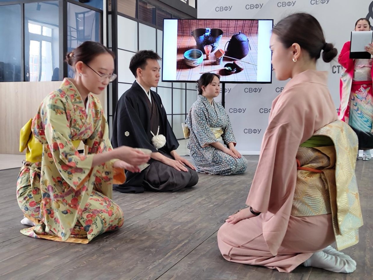 Особую атмосферу мероприятию придала чайная церемония, организованная студентами кафедры восточных языков и страноведения Института зарубежной филологии и регионоведения СВФУ. Они продемонстрировали традиционный ритуал и рассказали о глубоком значении и важности чайных традиций в восточной культуре.