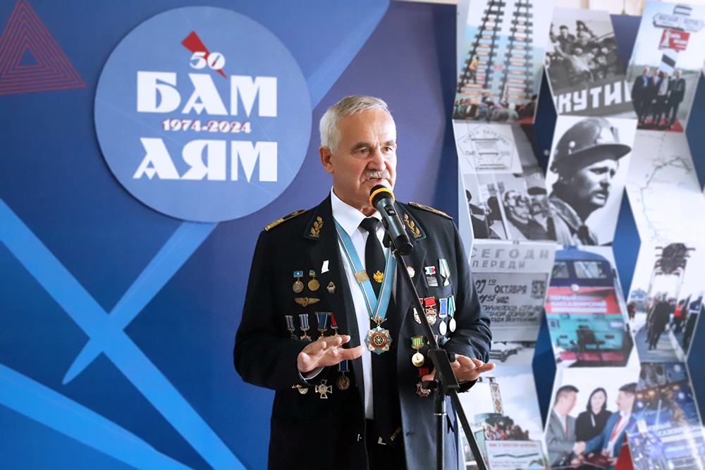 От имени бамовцев гостей приветствовал Александр Дудников. Он рассказал об истории строительства и значении железной дороги для развития экономики Якутии, роли Акционерной компании «Железные дороги Якутии» в транспортной системе Якутии, о значимых событиях и людях великой стройки БАМ и АЯМ. Он пожелал школьникам найти в жизни свою дорогу, жить и работать с таким энтузиазмом, как строители БАМа.