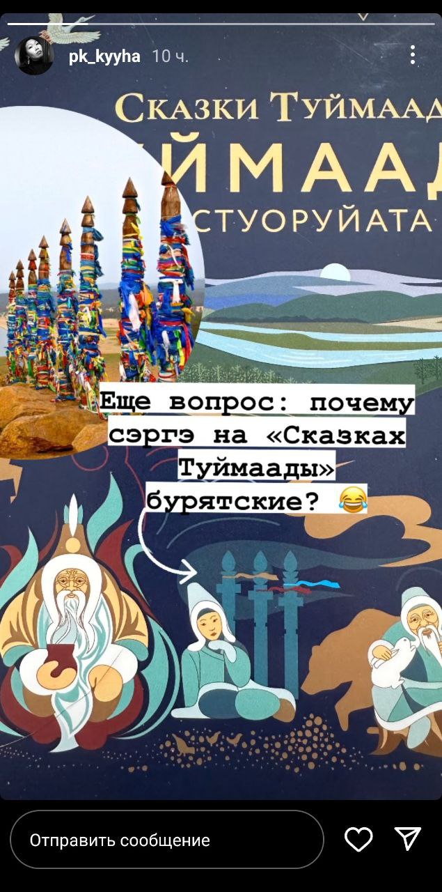 — Почему сэргэ на «Сказках Туймаады» бурятские, — задалась вопросом научный сотрудник Института гуманитарных исследований и проблем малочисленных народов Севера СО РАН, археолог и этнограф Александра Прокопьева.