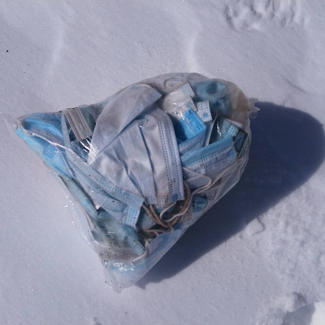 "Этот полный пакет использованных медицинских масок я собрала с сакрального места у входа в пещеру. Рядом уникальные памятники культуры - древние писаницы с изображением шамана. Скалы изуродованы надписями а-ля 'здесь был Вася', а на дереве вместе с салама висели эти медицинские маски.