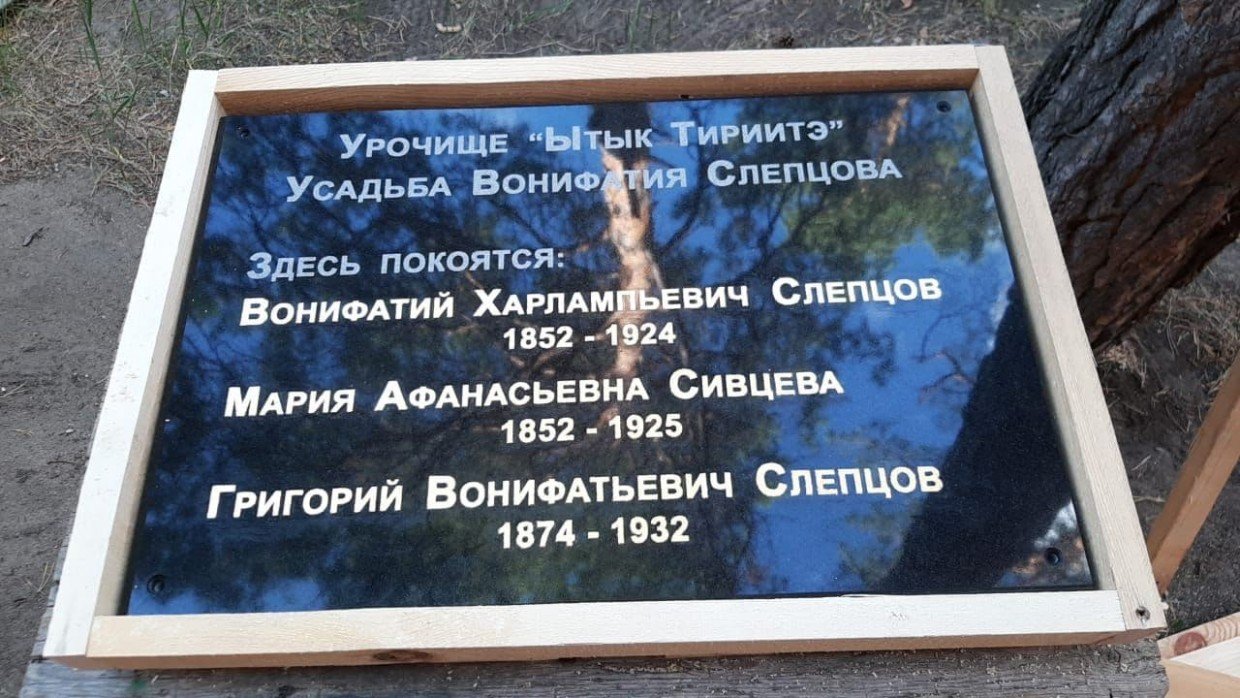 В родовом урочище, алаасе Ытык Тириитэ Таттинского улуса при поддержке Черкехского музея и лично директора музея Николая Ефимовича Попова была установлена памятная доска и камень памятник.