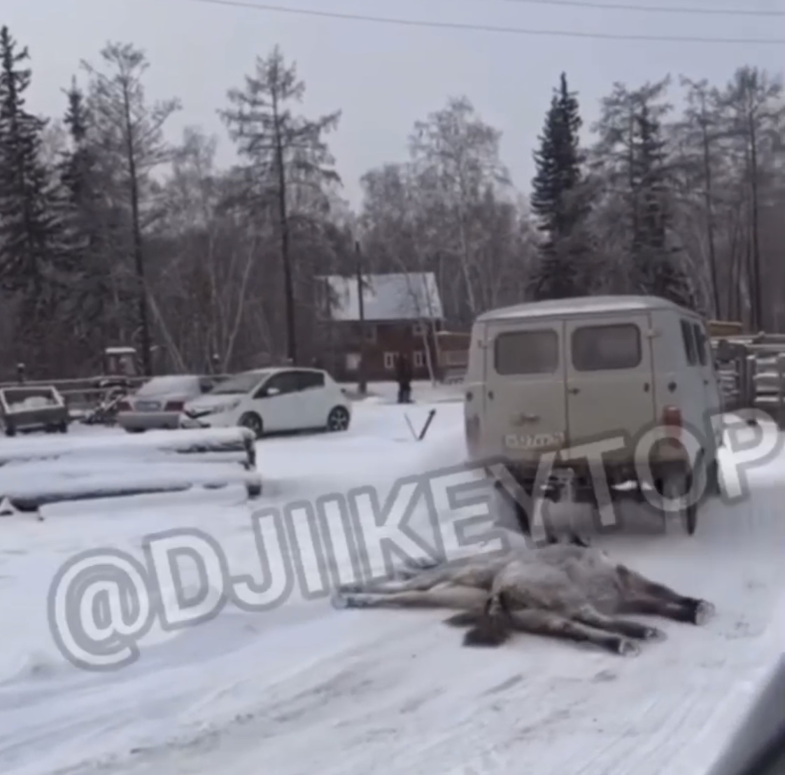 Скрин из видео. Обычно туши везут в деревню на санях