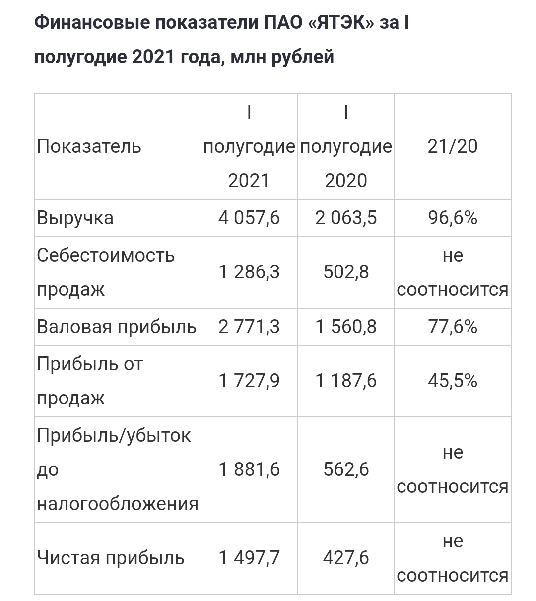 Выручка ПАО «Якутская топливно-энергетическая компания» (ЯТЭК) по итогам первых шести месяцев текущего года выросла на 96,6% и составила 4,06 млрд рублей.