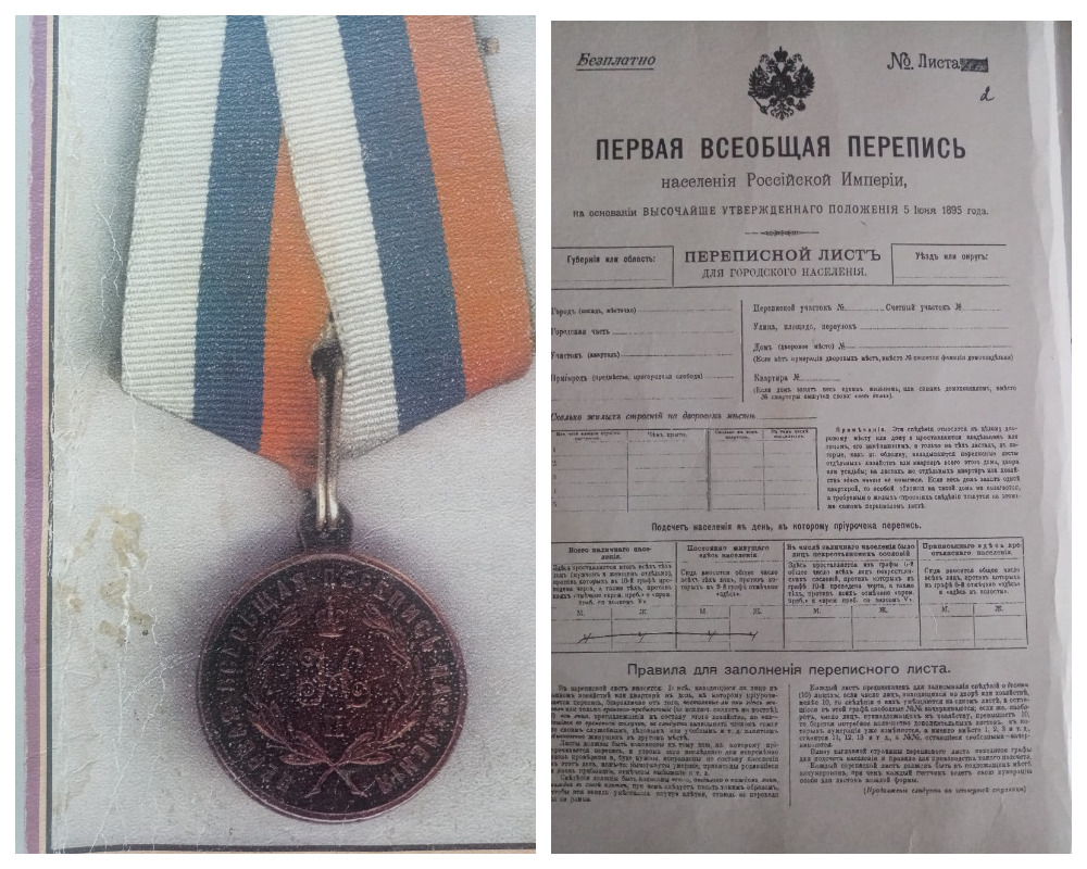 В связи с проведением всеобщей переписи населения России 1897 года, императором Николаем II была утверждена медаль "За труды по Первой всеобщей переписи населения 1897 г".