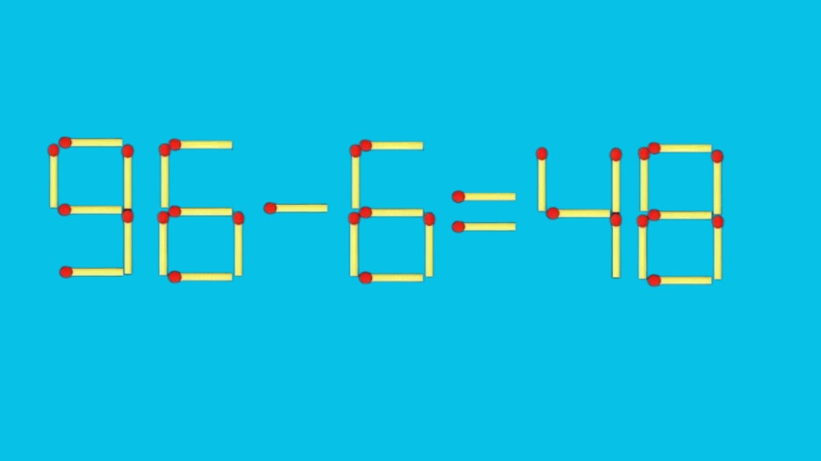 Присмотритесь повнимательнее к этой иллюстрации: в равенство «96 — 6 = 48» закралась явная ошибка. Исправить её получится, передвинув всего одну спичку. Поразмышляйте и выдвиньте свою версию.