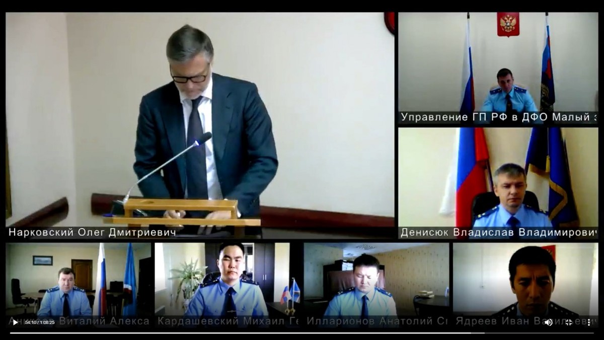 В работе совещания в режиме видеоконференцсвязи приняли участие глава республики Айсен Николаев, прокурор республики Олег Нарковский, руководители региональных, правоохранительных и контролирующих органов, работники прокуратуры.