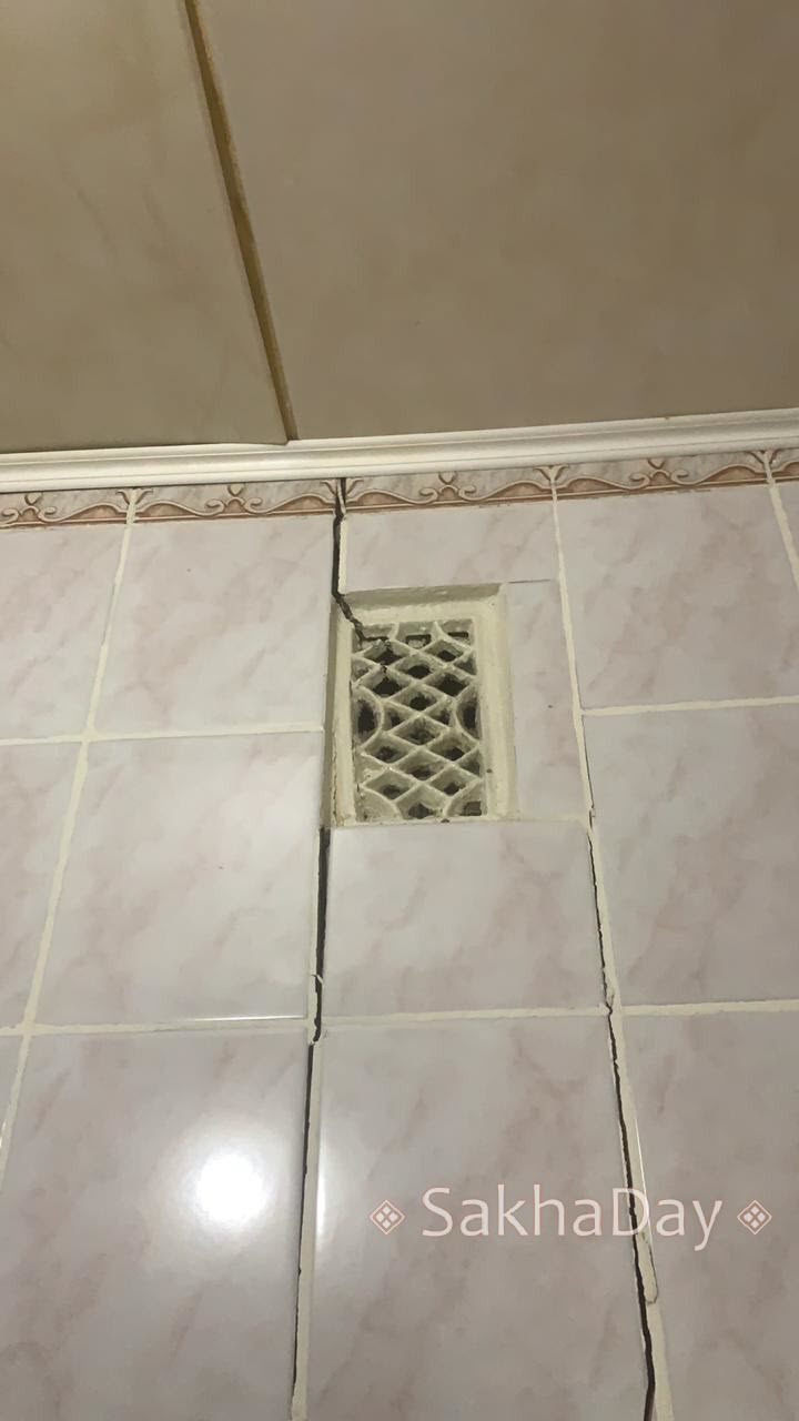 Как сообщили жители дома журналисту Sakhaday, в данные минуты дом продолжает падать. Благодаря бдительности жителей, никто не пострадал.