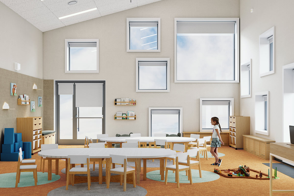 При этом проект не «копируется» буквально. В Якутии он концептуально адаптирован с учётом нужд и особенностей региона. В том числе с учётом климата: между зданиями предусмотрены тёплые арктические переходы, чтобы дети могли комфортно перемещаться в любое время года.