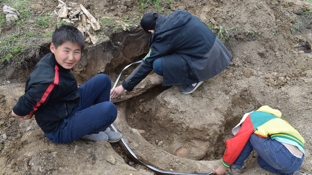 Житель Хангаласского улуса Якутии в ходе работ на своем участке обнаружил бивни мамонта. Животное могло жить в этих местах 400 тысяч лет назад. Егор, владелец участка: «Я занимался посадкой картофеля на своем участке, когда лопата наткнулась на что-то твердое. Сначала подумал: дерево, но когда откололся кусочек, понял, что это нечто другое». По его словам, в ближайшее время на место должны прибыть палеонтологи из Якутска, сообщает РИА Новости. Руководитель экспедиции учеников местной школы, краевед Прокопий Ноговицын уже освободил часть бивней от земли. В своем Facebook он написал, что останки могут принадлежать трогонтериевому мамонту (предку шерстистого мамонта) возрастом 400 тысяч лет.
