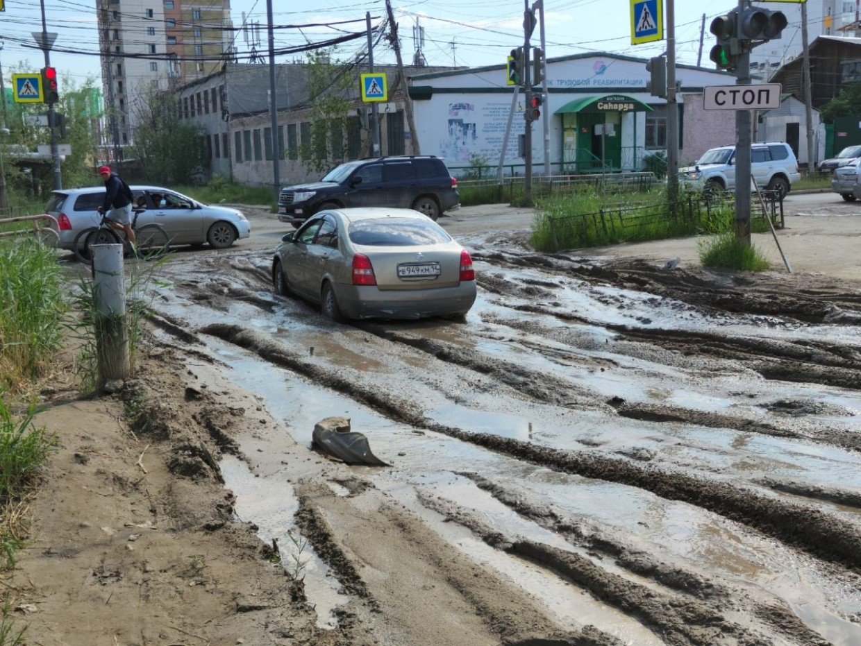 Жители Якутска, проживающие на улице Чкалова, собирают деньги, чтобы отсыпать дорогу, превратившуюся в месиво из грязи и луж. Грунтовая проезжая часть здесь и так была не в лучшем состоянии, которая стала ухудшаться с недавних пор. Из-за перекрытия дорог на ремонт по ней передвигаются все больше машин.