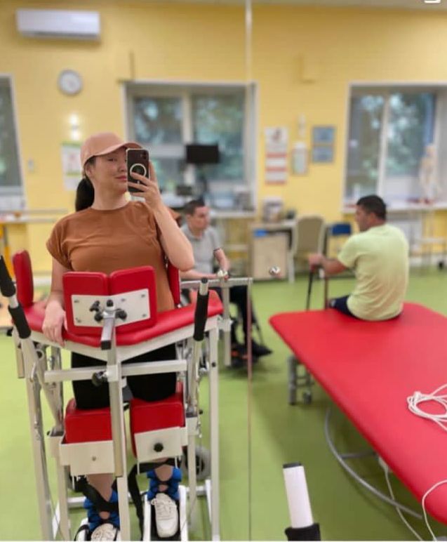 Курсы реабилитации дали отличные результаты! К Кире частично вернулась чувствительность на пальцах, она смогла пользоваться смартфоном. Научилась медленно ходить по беговой дорожке со страховкой, держась за поручень, пересаживаться из коляски на стул.