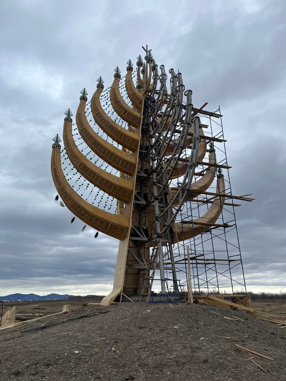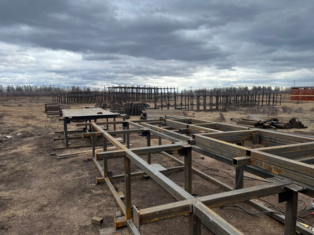 Бригады из 3-4 человек сооружают зрительскую трибуну из металлоконструкций, строят балаган для детей-олонхосутов.