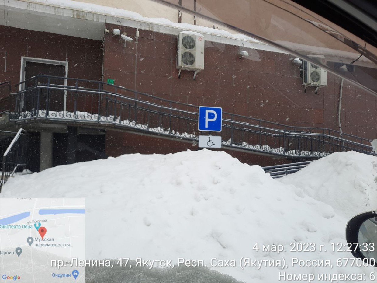 После концерта администратор сообщила, что директор не принимает, но я могу написать отзыв в 2ГИС. Рассмеялась, что мне ваш 2ГИС, я лучше напишу в административную комиссию по нарушению правил благоустройства и заявление по нарушению «доступной среды» в прокуратуру и Роспотребнадзор (пока реакция есть только от административной комиссии Якутска и «ваше заявление зарегистрировано» от прокуратуры). По нормативам, сброшенный с крыши снег должен быть убран в течение одного рабочего дня. Для достоверности на следующий день заехала проверить. Кто бы сомневался? Думаете, что-то изменилось?