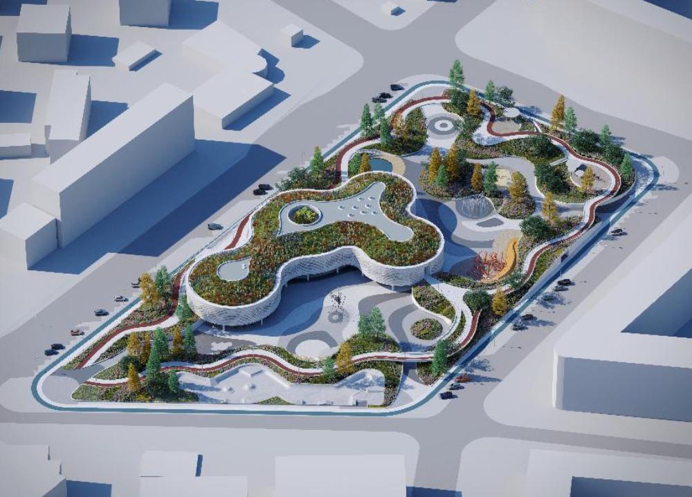 «Помимо самого здания, проектом благоустройства предусмотрено создание искусственного рельефа с холмами по периметру всей территории, что разнообразит территорию Парка, а также в какой-то мере защитит территорию от пыли и газа, поступающих со стороны окружающих городских улиц. Для создания рельефа предусмотрены подпорные железобетонные стенки, монтаж которых начнется в текущем году. И, конечно же, на территории Парка будут установлены детские и спортивные площадки, воркаут-зона и скейтпарк», – отмечает Владимир Егоров.