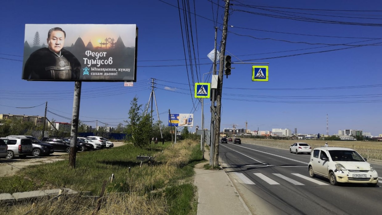 Оригинальные поздравления с днем Ысыаха разместила на улицах Якутска СРЗП. На баннерах - лидер республиканских справороссов, депутат Госдумы Федот ТУМУСОВ и председатель регионального отделения Комитета солдатских матерей России Мария ЕМЕЛЬЯНОВА.