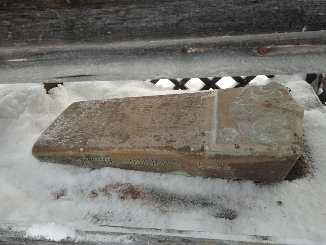 «Вот что удалось прочитать на могильном камне. Надпись на камне гласит: «Под сим камнем покоится раб прах божий инородца Намского улуса Кобяконского наслега Гаврила Гаврильева Ряхляца …умершего от роду 25 лет скончался в 1912 года … 5 числа месяца. Господи сотвори ему вечную память». К сожалению, это пока всё, что удалось прочитать.
