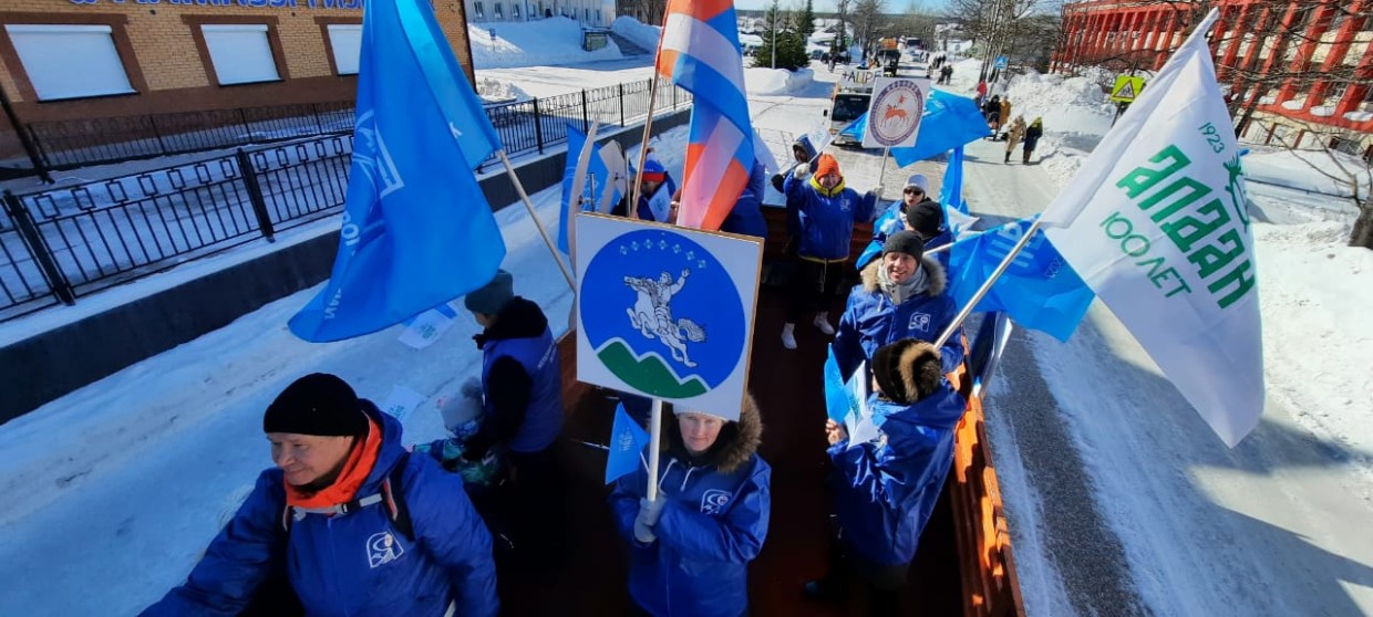 Именно этому знаковому событию были приурочены в Алдане проводы зимы, основные мероприятия которых были направлены на то, чтобы показать «Как это было…». Сплоченный коллектив «Железных дорог Якутии» охотно подхватил идею праздника. Колонна железнодорожников символизировала многолетнюю дружбу и сотрудничество и была украшена гербами и флагами Алданского района и Мегино-Кангаласского улуса. Импровизированным поездом управлял действующий машинист тепловоза, облаченный в парадную форму.